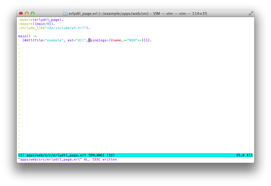 $ echo "Hello Erlydtl. I am {{name}}!" > apps/web/priv/templates/example.dtl