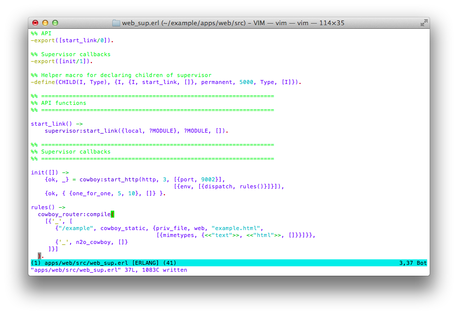 example|master⚡ ⇒ tree . . ├── apps │ └── web │ ├── ebin │ └── src │ ├── index.erl │ ├── routes.erl │ ├── web.app.src │ ├── web_app.erl │ └── web_sup.erl ├── deps ├── rebar └── rebar.config
